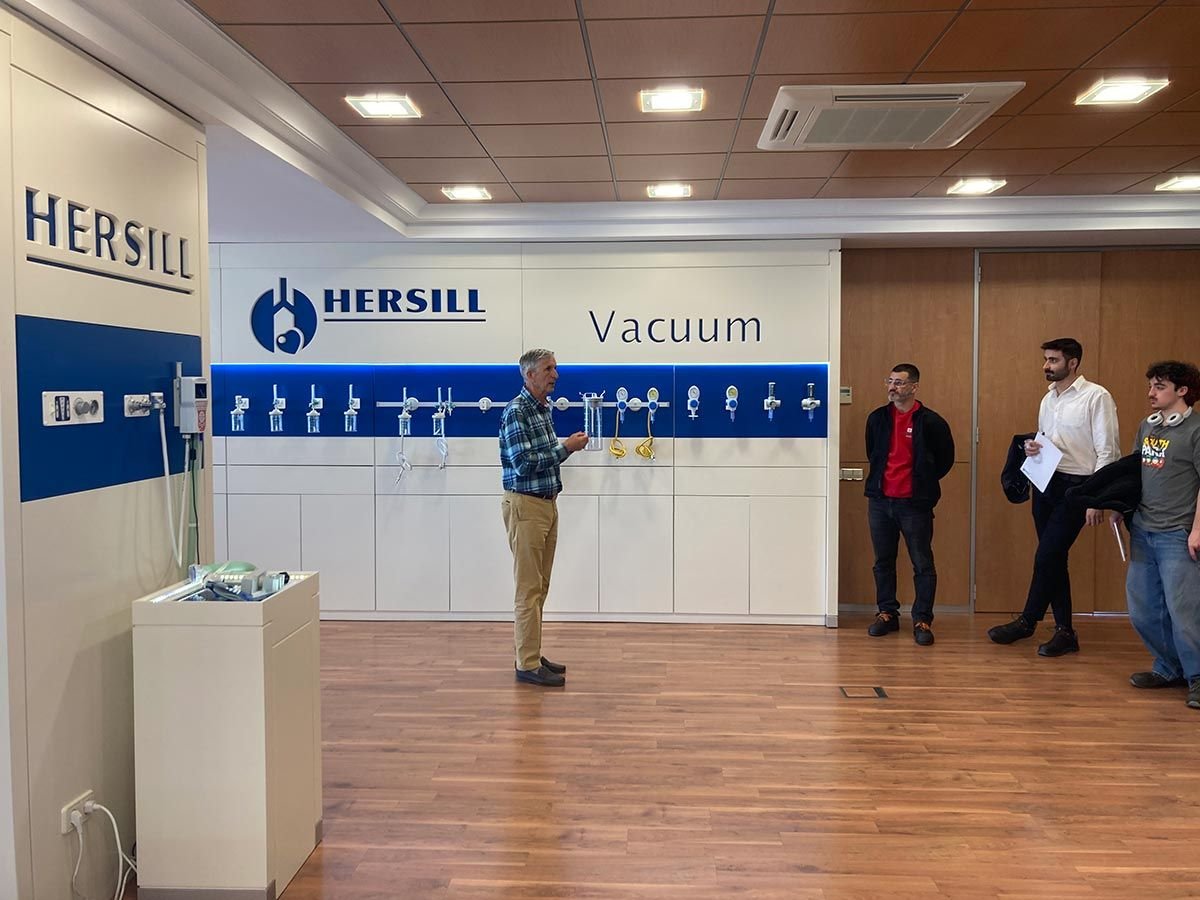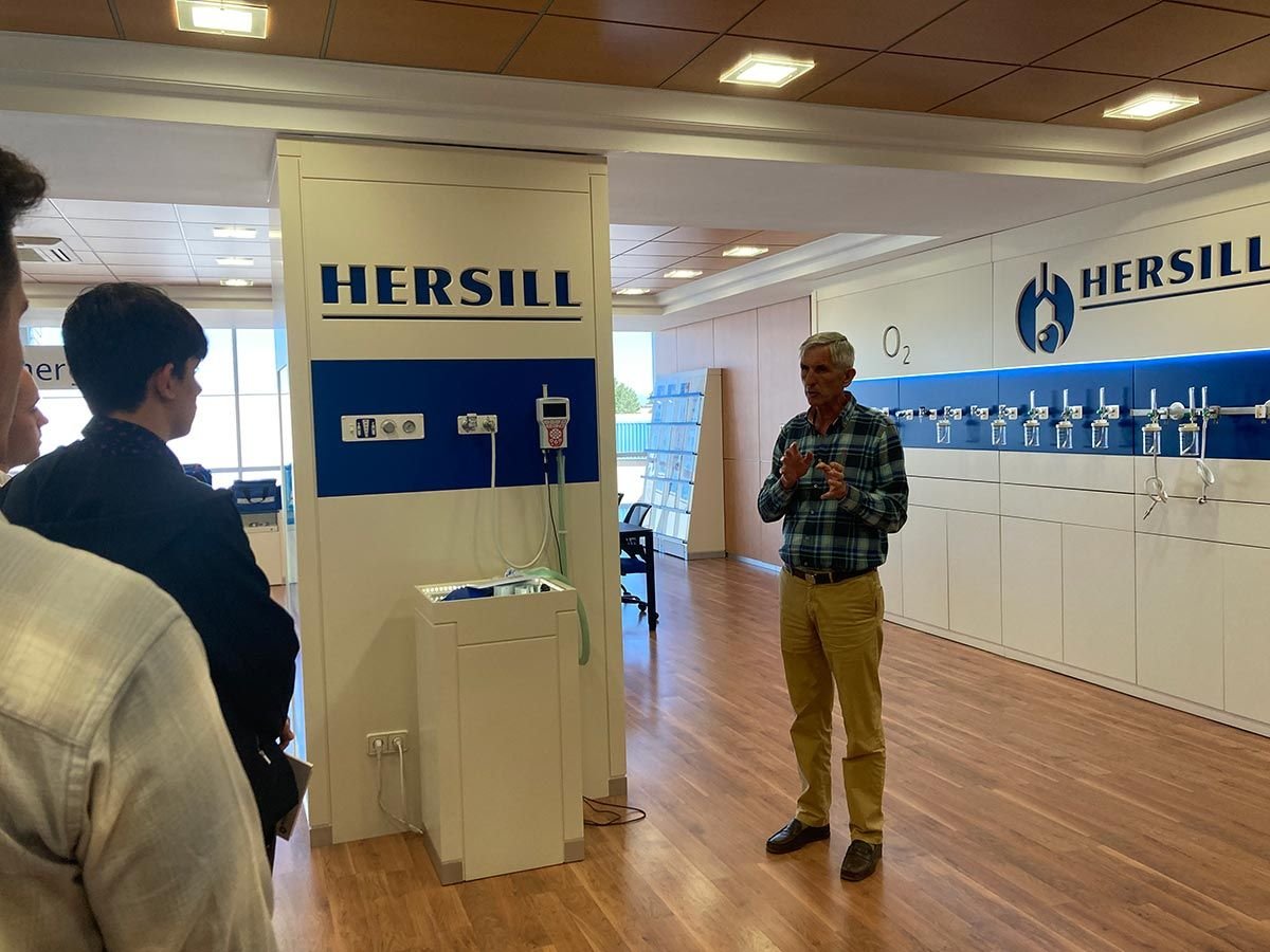 Benjamín Herranz, presidente de Hersill, ha explicado a casi 50 alumnos de FP del Colegio Salesianos de Atocha la historia y trayectoria de esta empresa tecnológica fundada hace más de 50 años. Hersill es una empresa pionera en España en fabricación de equipos médicos. A lo largo de su trayectoria la empresa ha sido merecedora de numerosos premios y reconocimientos a su labor. Tras la charla, los estudiantes han tenido la oportunidad de visitar una exposición de los equipos médicos fabricados por la empresa y de visitar la propia fábrica.