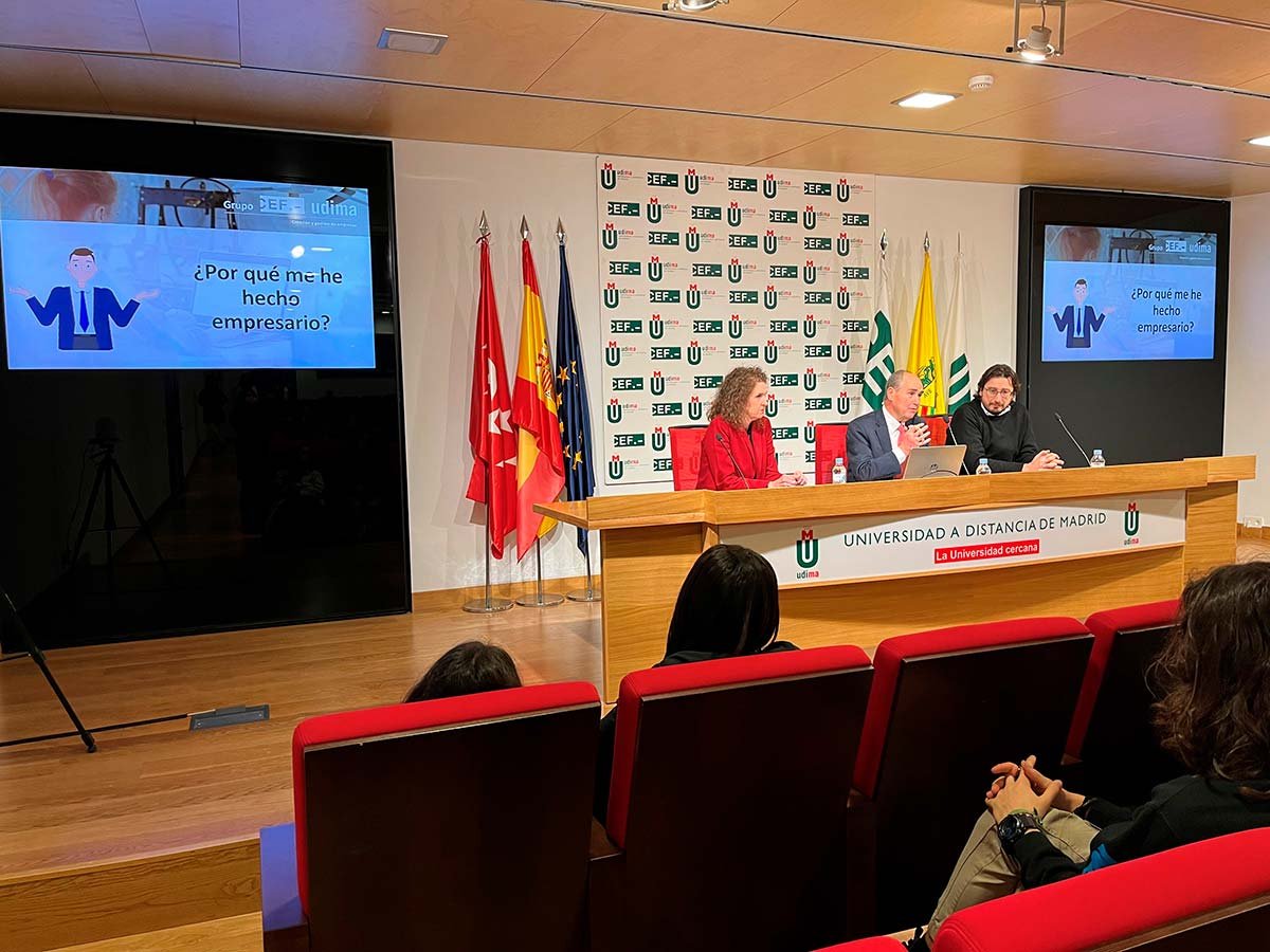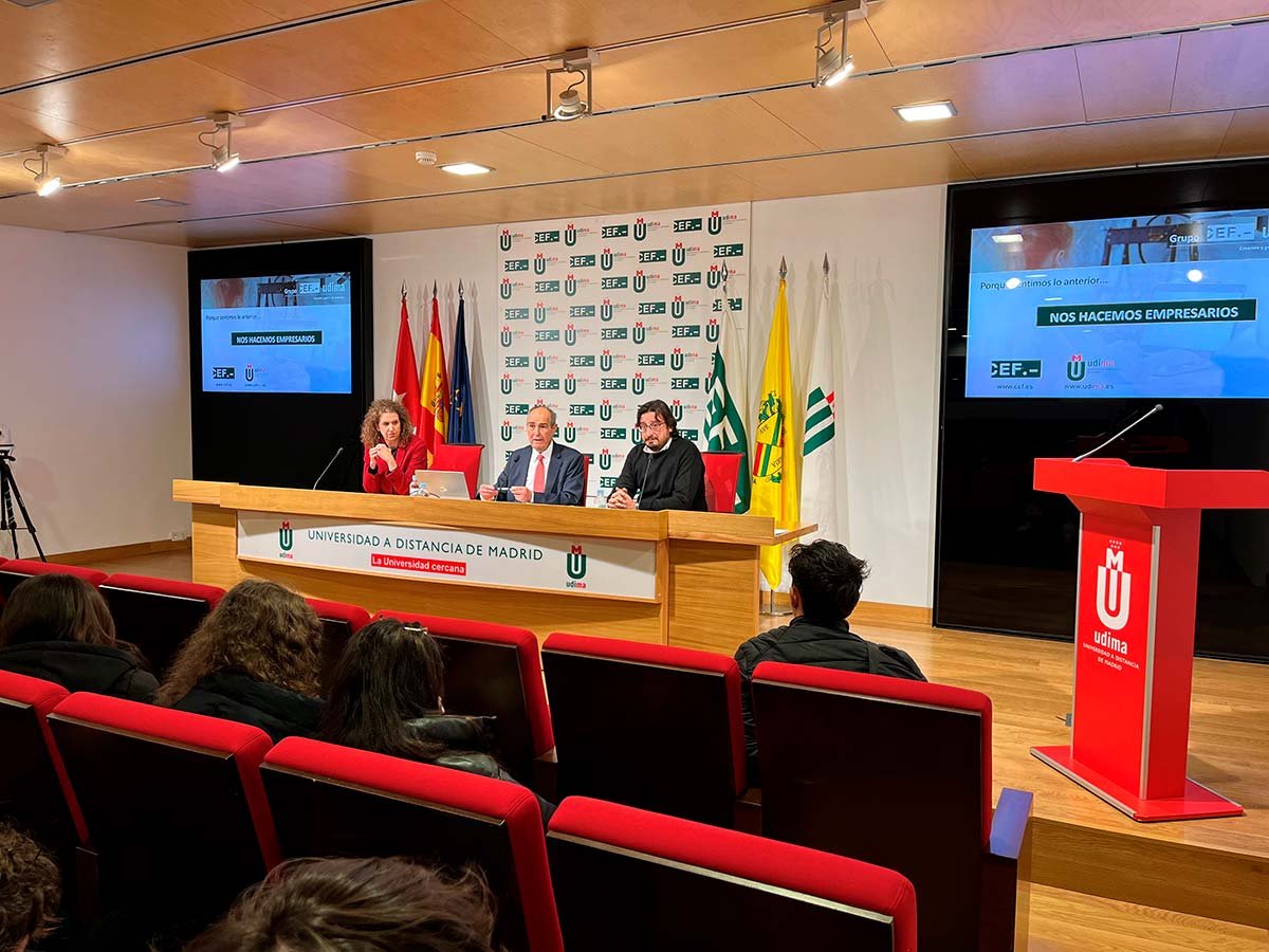 Durante la jornada, los estudiantes tuvieron la oportunidad de conocer a Roque de las Heras, fundador y presidente del Grupo Educativo CEF. – UDIMA, quien les compartió la historia y evolución de esta empresa familiar, fundada hace casi 50 años. En su intervención, De las Heras explicó los motivos que lo llevaron a emprender y destacó los valores fundamentales que debe tener un empresario. Además, los animó a considerar el emprendimiento como una opción de futuro y subrayó la importancia de las empresas en la economía y la sociedad. Tras su charla, Julián Roa González, Decano de la Facultad de Ciencias de la Salud y la Educación de la UDIMA, charló con los estudiantes sobre los retos y oportunidades del futuro, con especial enfoque en la Inteligencia Artificial. Para finalizar la visita, los estudiantes recorrieron las instalaciones de la UDIMA, incluyendo su plató de audiovisuales, donde conocieron más sobre los recursos tecnológicos y educativos de esta universidad.