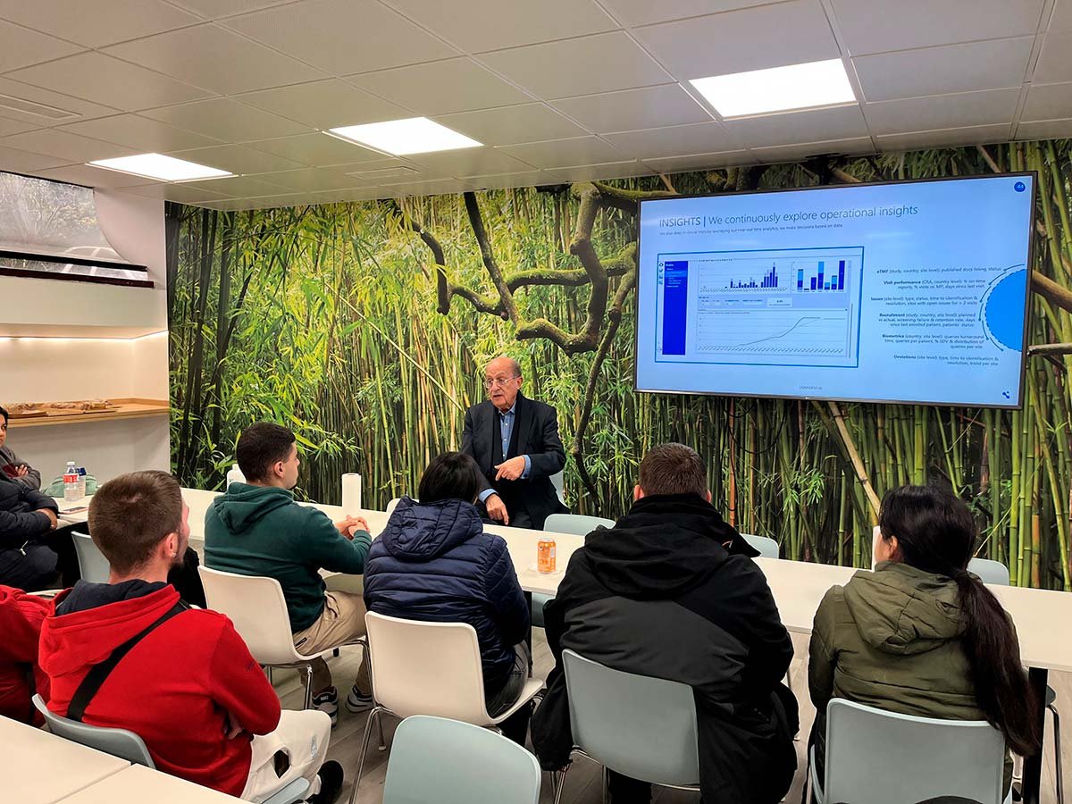 Días más tarde los estudiantes tuvieron la oportunidad de visitar la sede de Pivotal en Madrid. Tras la visita a las instalaciones, la jornada culminó con un interesante coloquio con el Dr. Ibrahim Farr, fundador de Pivotal, quien compartió con los alumnos su trayectoria profesional y empresarial. Durante la conversación, el Dr. Ibrahim Farr profundizó en el concepto de las empresas familiares como Pivotal y, además, ofreció a los estudiantes claves valiosas sobre emprendimiento.