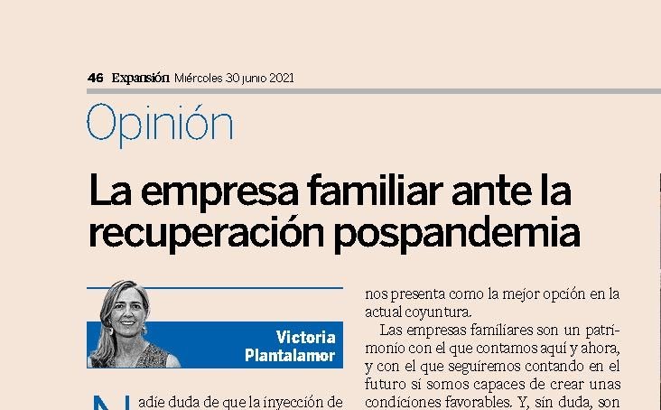 Concluye su artículo afirmando que “la llave para superar esta grave crisis que afrontamos es, sobre todo, favorecer la creación de empresas y preservar las condiciones que hacen posible que todas, y en especial las empresas familiares, perduren y sean el sustrato de estabilidad que permite la creación de empleo y el desarrollo de sociedades libres y prósperas”.
