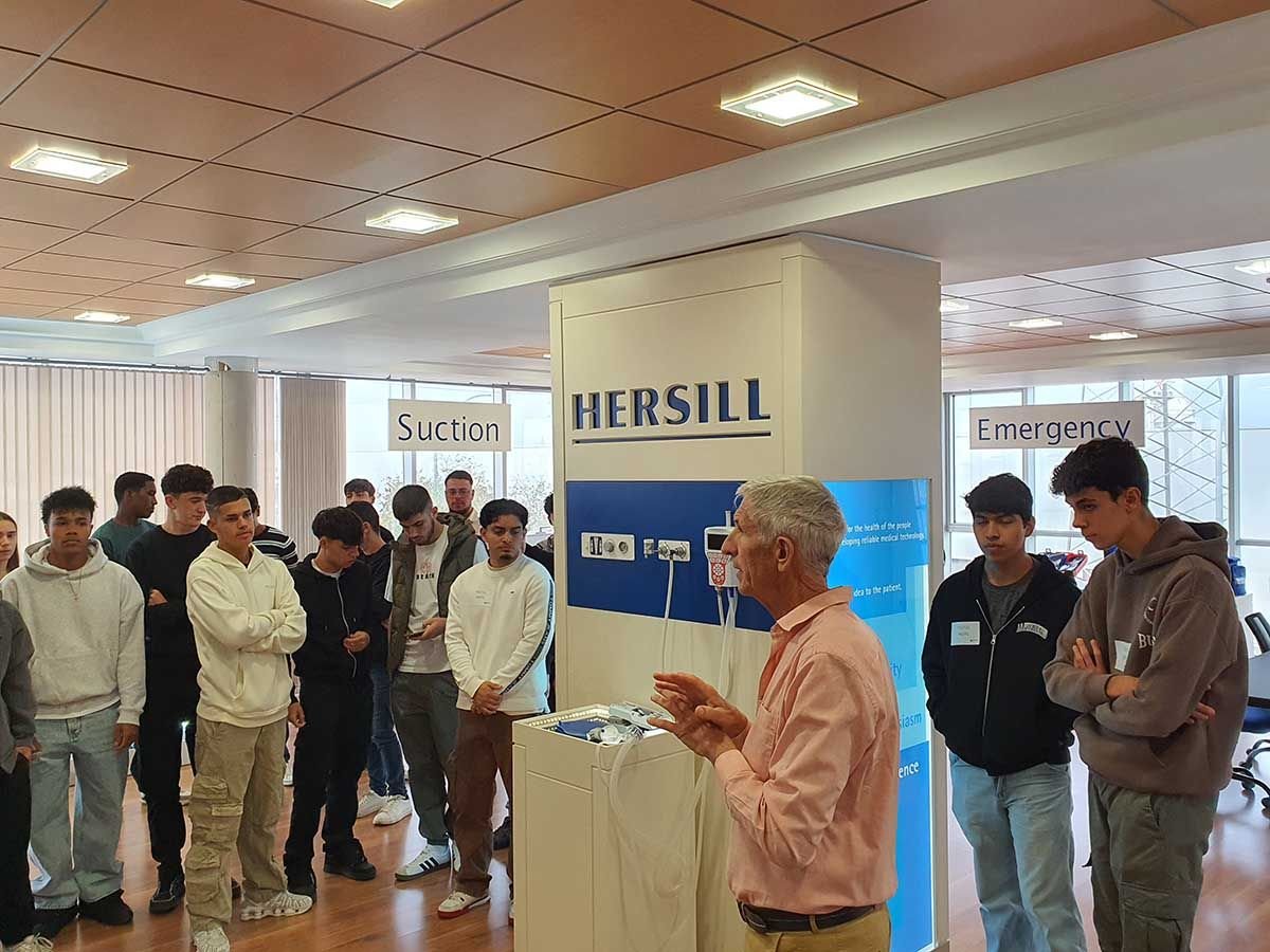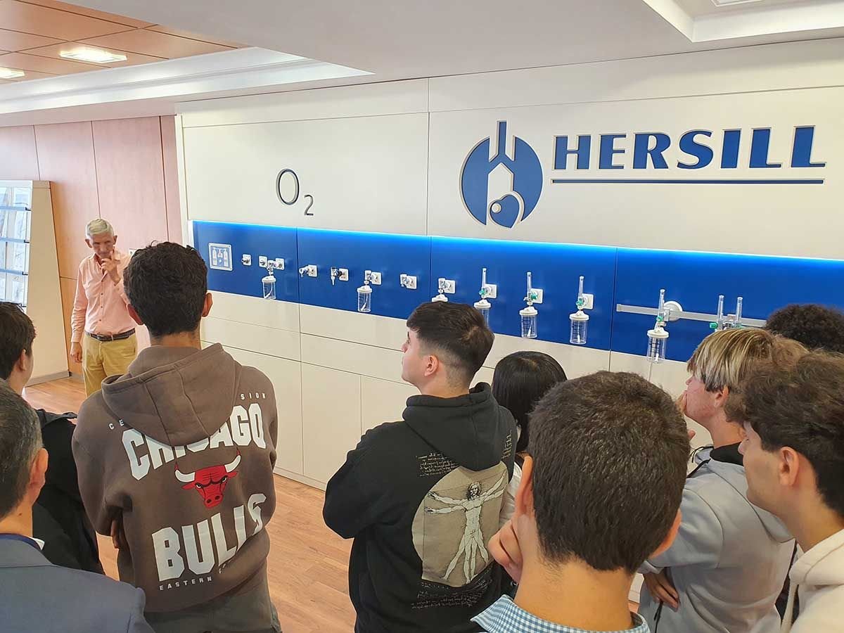 La jornada comenzó con una charla del presidente de Hersill, Benjamín Herranz, quien compartió su experiencia personal y profesional al frente de esta empresa familiar. Durante su intervención, abordó cuestiones clave sobre las empresas familiares: su importancia en la economía, los retos que enfrentan, y los valores que las definen, invitando a los estudiantes a reflexionar y participar con preguntas, generando un diálogo cercano y enriquecedor. Seguidamente, Jorge Sánchez de la Rúa, responsable del departamento informático de Hersill, explicó a los estudiantes cómo funciona este departamento para lograr que todo en la empresa funcione de forma rápida y segura. La jornada terminó con una visita guiada a las instalaciones de Hersill donde los estudiantes pudieron observar de primera mano cómo desarrollan y fabrican equipos médicos que salvan vidas.