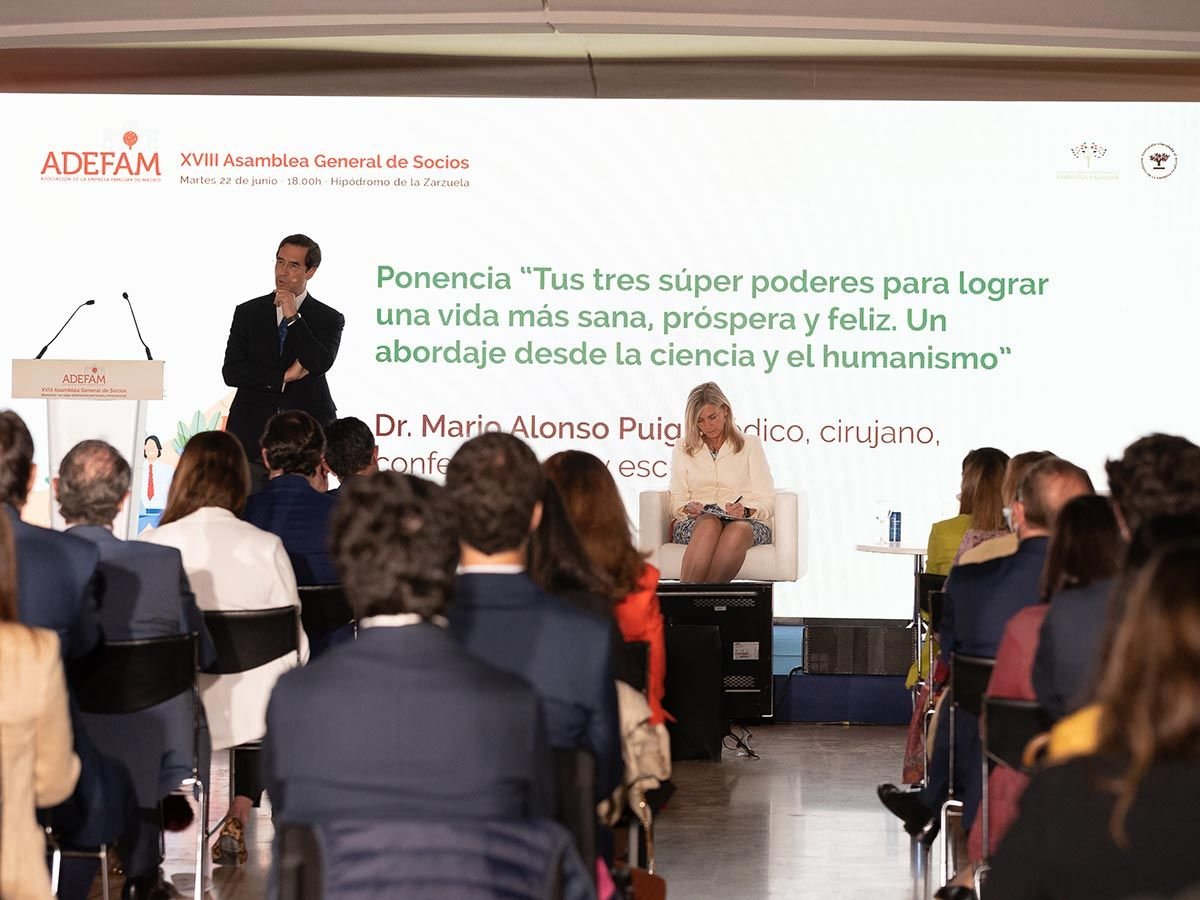 Con un gran éxito de asistencia comenzamos a las 18:00h con la reunión de socios, parte exclusiva sólo para socios de ADEFAM. Después tuvo lugar una jornada muy especial protagonizada por Mario Alonso Puig, Médico, cirujano, conferenciante y escritor, bajo el título “Tus tres súper poderes para lograr una vida más sana, próspera y feliz. Un abordaje desde la ciencia y el humanismo”.