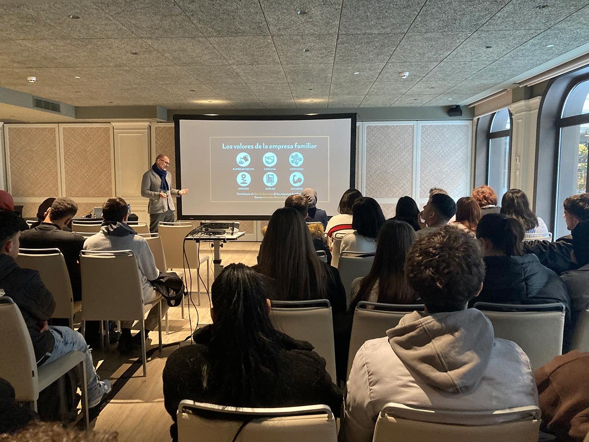 26 alumnos de 1º de Grado Medio de Gestión Administrativa y 24 alumnos de 1ª de Grado Superior de Administración y Finanzas del IES Vallecas Magerit visitaron el hotel El Madroño dentro del programa Empresa Familiar en las Aulas. Javier Pérez Jiménez, director general de VP Hoteles y de VP Ginkgo Restaurantes, recibió a los estudiantes y les impartió una charla en la que les explicó la historia de su empresa familiar al tiempo que animó a los estudiantes a valorar la posibilidad de emprender en el futuro. Tras la charla, los estudiantes pudieron visitar el hotel de la mano del propio Javier Pérez. Para finalizar, los estudiantes disfrutaron de un aperitivo mientras conversaban animadamente con el empresario trasladándole sus dudas e impresiones.