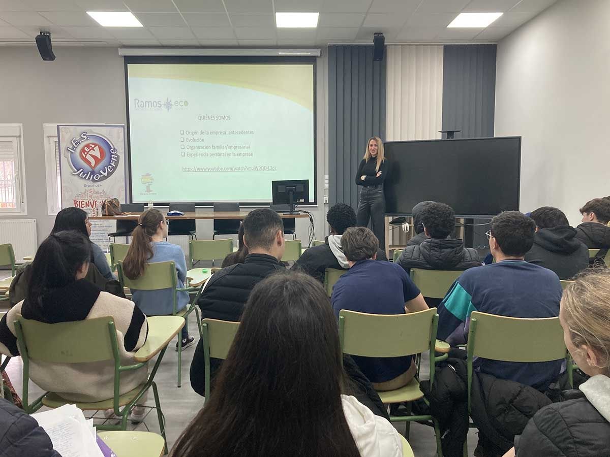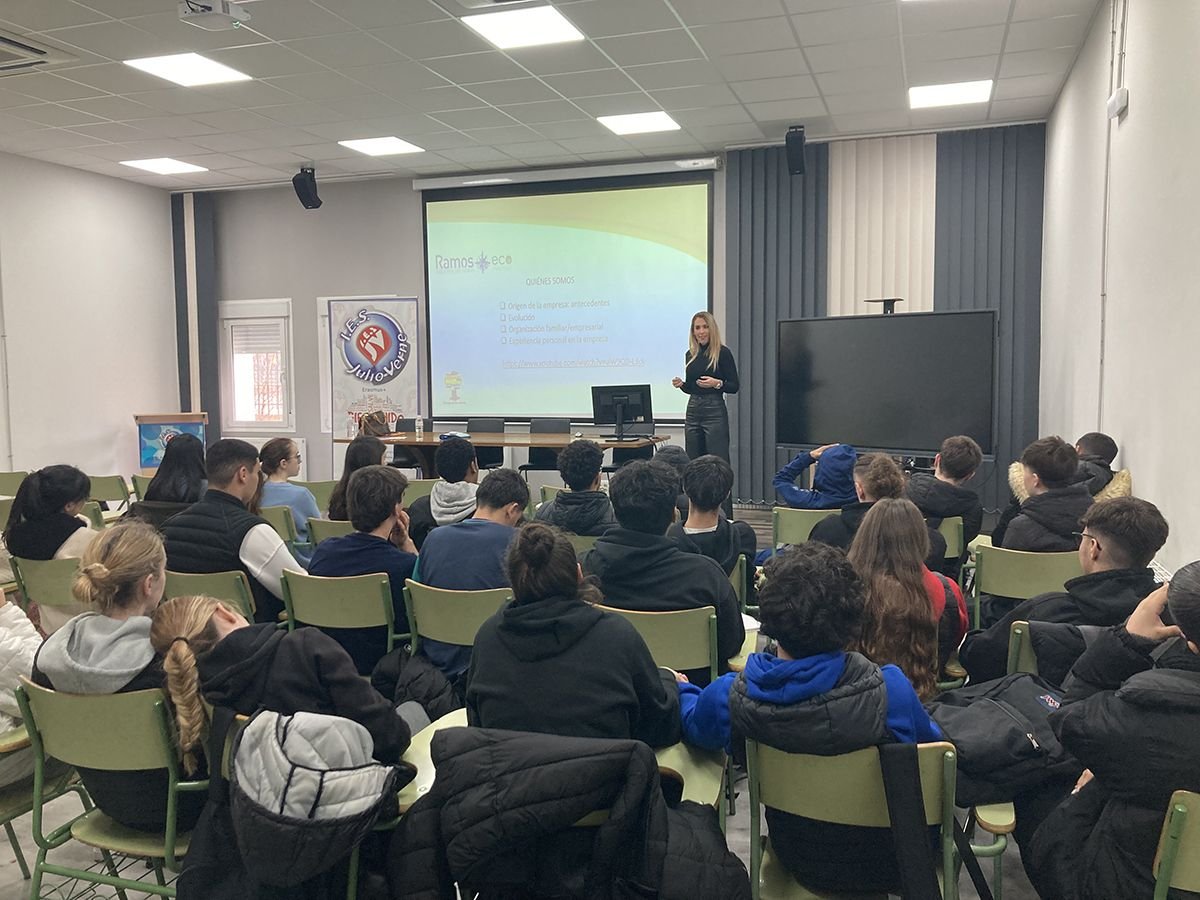 Silvia Ramos, directora de marketing de Ramos Industria del Vidrio, ha sido la encargada de pronunciar una charla ante 40 alumnos de 4º de ESO en el IES Julio Verne de Leganés, dentro del programa Empresa Familiar en las Aulas, impulsado por ADEFAM junto a la Comunidad de Madrid. Durante su charla, Silvia ha contado la historia de su empresa familiar desde su fundación en 1984 por parte de su abuelo. También les ha explicado cómo es su experiencia profesional como empresaria. Los estudiantes tendrán la oportunidad de realizar una visita a los dos centros de fabricación que la empresa tiene en Leganés.