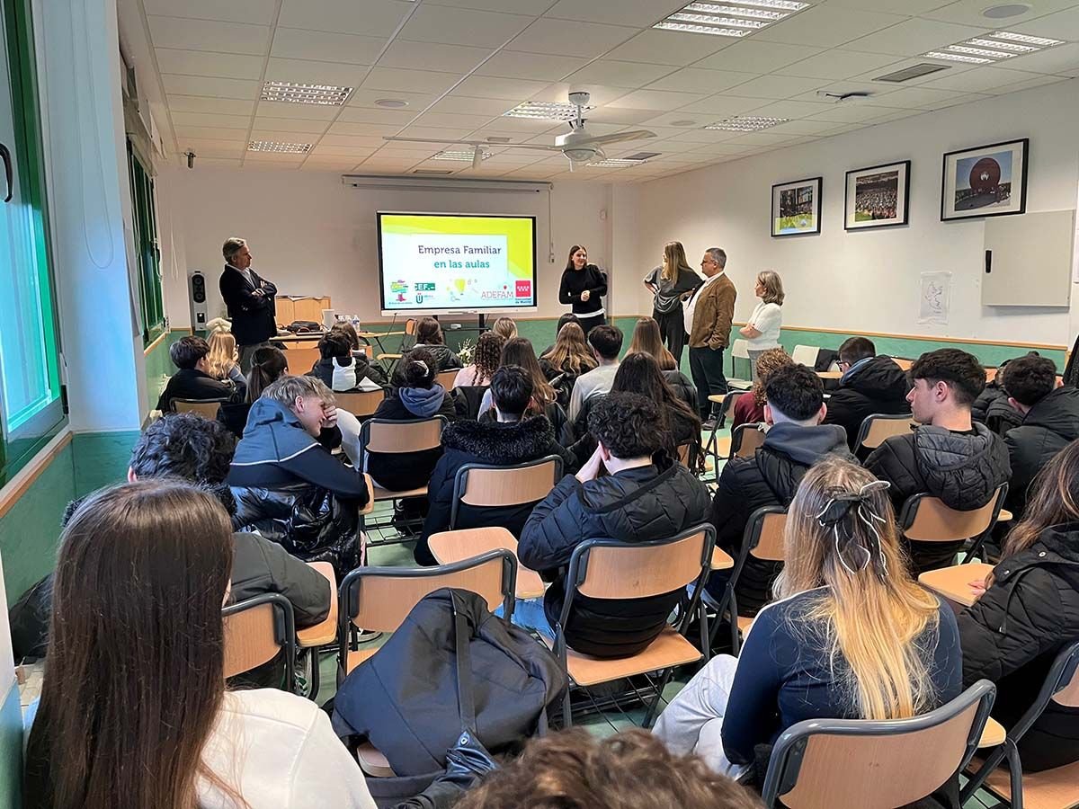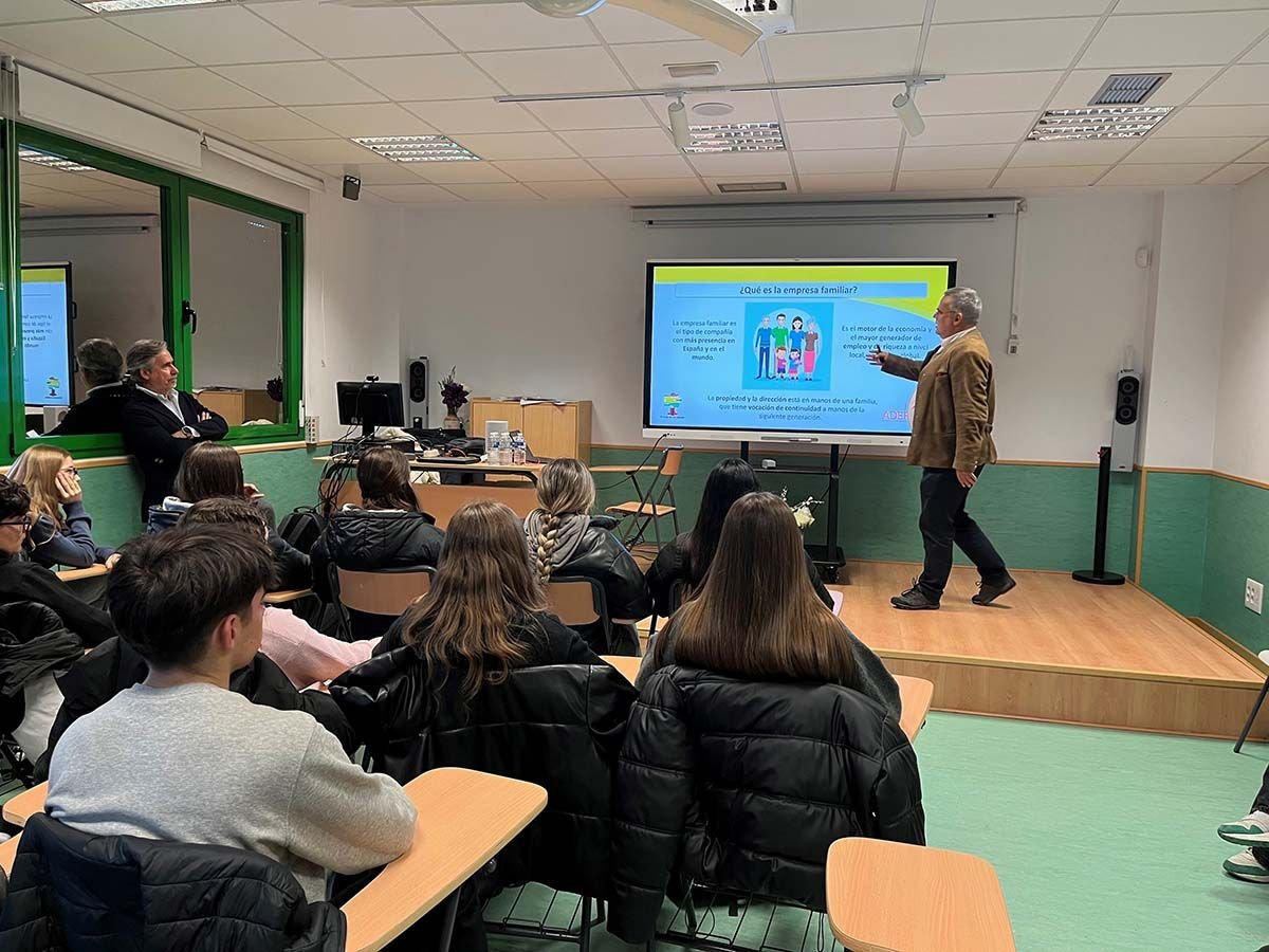 Los empresarios, compartieron con 45 estudiantes de 4º de ESO la historia de su empresa familiar, dedicada a la climatización de vehículos y con una destacada presencia internacional, cuya historia se remonta al año 1956. En el grupo empresarial cuentan además con otra rama de actividad: la recuperación de residuos industriales.